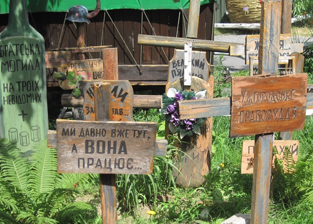 Але прагнення до Європи – не означає сепаратизм. Щоб наочно показати це, Чучка відкрив заклад Деца у нотаря – з місцевого діалекту назву можна перекласти як «Сто грам у нотаріуса». Це і корчма, й етнографічний музей, і розсадник специфічного гумору. Так, на тутешньому Кладовищі задніх перспектив «спочивають» чесний журналіст, добрий сусід Росія, ідеали Майдану (ще першого, помаранчевого).