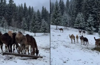 Мешканці парку обережно ступали по снігу й намагалися зрозуміти, чи можна це їсти.