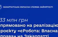 - На Закарпатті на реалізацію проєкту «єРобота: Власна справа» спрямовано 133 млн грн
