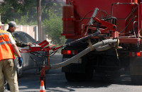Поточний ремонт дорожнього покриття вулиці Митної сьогодні в Ужгороді проводять із використанням спеціальної машини, яка відома як «пачматік».