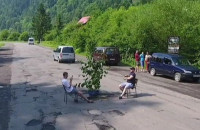 На Міжгірщині влаштували рибалку у ямі посеред дороги.