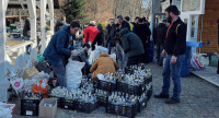 В Ужгороді волонтери готують коктейлі Молотова, або як зараз називають запалювальну суміш – "бандерівське смузі". Люди приносять і сортують скляні пляшки, бензин, ганчірки. Все це планують передати у столицю України для оборони від російської армії.