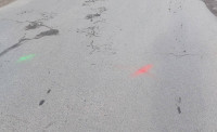Щойно в с. Оноківці було виявлено подібні мітки, нанесені люмінесцентною чи світловідбиваючою фарбою.