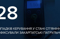 Протягом цього тижня, з 13 до 18 грудня, закарпатські патрульні зафіксували 28 випадків керування у стані наркотичного або алкогольного сп‘яніння: