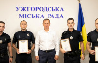 Міський голова Богдан Андріїв вручив сьогодні грамоти патрульним поліцейським. Відзнаки Ужгородської міської ради за особистий вагомий внесок у справу боротьби зі злочинністю, зміцнення законності і правопорядку, захист інтересів суспільства і держави та з нагоди 30-ї річниці Незалежності України отримали працівники управління патрульної поліції в Закарпатській області – капітан поліції Антон Бутенко, старший лейтенант поліції Едуард Готра, лейтенант поліції Андрій Лукачович та лейтенант поліції Олександр Желізняк.