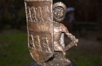 Вже 43 міні-скульптурку сьогодні урочисто відкрили у сквері, що знаходиться у центральній частині міста біля входу у будівлю Хімічного факультету УжНУ. Символічно презентували роботу туризмознавець, професор Федір Шандор, скульптор Роман Мирник, коваль Степан Руснак та меценат проєкту Сергій Ковач.