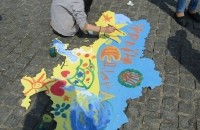 Ужгородські школярі різного віку з комітету учнівського самоврядування на площі Народній склали з країн-пазлів карту Європи.