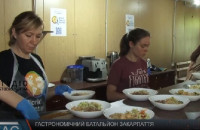 Волонтери організувалися з самого початку війни. Спочатку годували жителів на кордоні, вокзалі. А нещодавно відкрили їдальню. Працює тут понад 50 волонтерів, годують переселенців безкоштовно за кошти благодійників. Ці смаколики приготували волонтери Гастрономічного батальйону Закарпаття для вимушених переселенців Ужгорода.