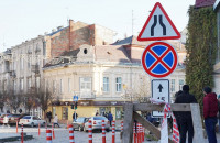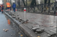 Антипаркувальні пластикові стовпчики встановлюють сьогодні в Ужгороді на площі Корятовича.