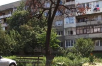 Розбита унівець прибудинкова територія будинку, що по вул. І.Зріні, 113. Гілля, що паде перехожим на голови.