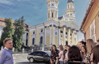 Радісною новиною розпочався ранок середи для першокурсників ФІФу: після першої пари – на екскурсію містом. «Увесь Ужгород – наша аудиторія», – жартує декан факультету Михайло Рошко, який особисто повів своїх студентів на ознайомлення з культовими локаціями старого міста. Неформальна атмосфера дала молоді змогу ближче дізнатися не тільки одне про одного, а й про свій тепер уже другий «дім». Прогулянка набережною під супровід цікавих і пізнавальних розповідей декана не залишила місця втомі.