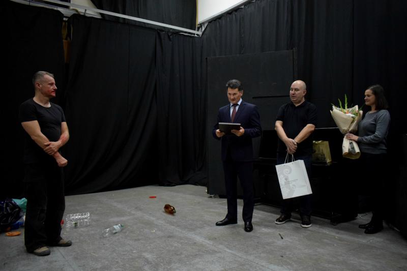 Після завершення вистави гостя привітав заступник Ужгородського міського голови Ігор Фартушок. «Я не є театральним критиком, тому скажу про свої емоції, які отримав сьогодні тут, у залі. Безперечно, це – дуже складний жанр. Протягом години артист тримає в напрузі весь зал. Скільки емоцій у цих очах, які рухи! Ми всі переживали разом із героєм», – зазначив Ігор Іванович і вручив Петеру Чижмарю дипломом за участь у «Монологах над Ужем».