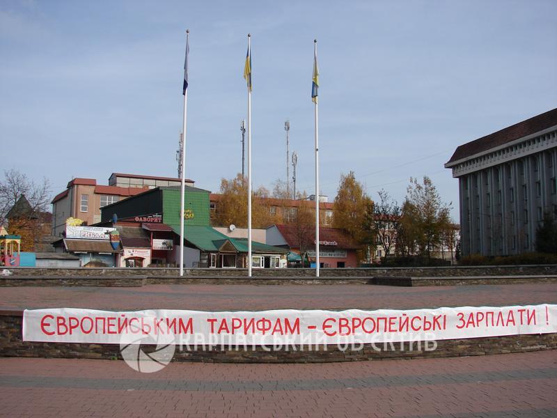Сьогодні хустяни вийшли на центральну площу міста на мирну акцію протесту проти підняття ціни на газ. Про це повідомляє "Карпатський об’єктив".