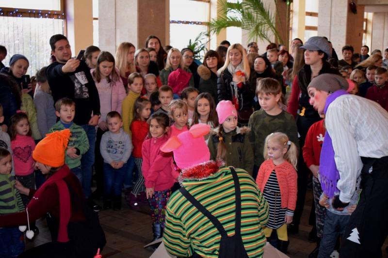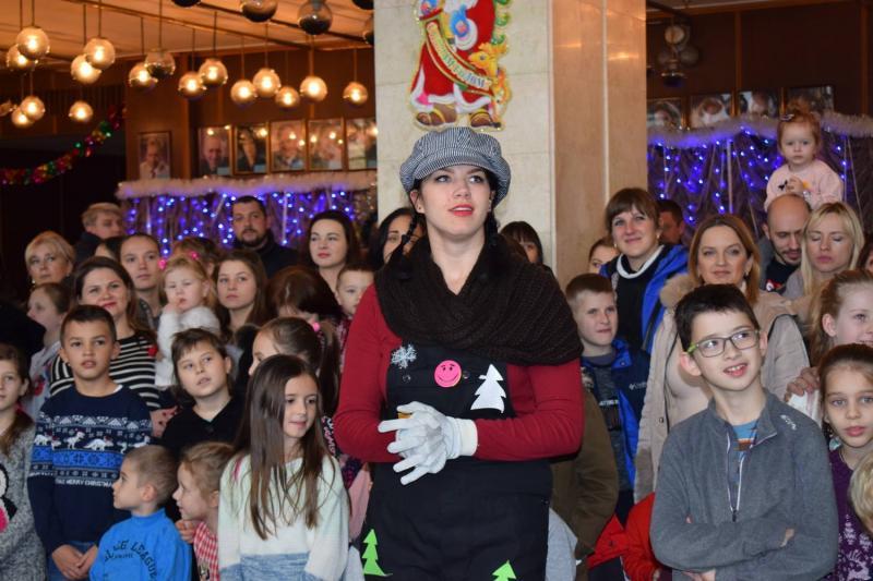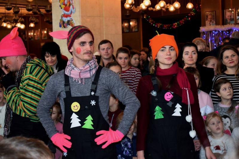 Діти мали змогу поспілкуватися з казковими героями, зокрема Дідом Морозом і Снігурочкою. Далі всім учасникам свята подарували виставу "Дві снігурки і один Новий рік", де також серед персонажів була Баба Яга, жителі лісу тощо.
