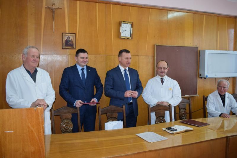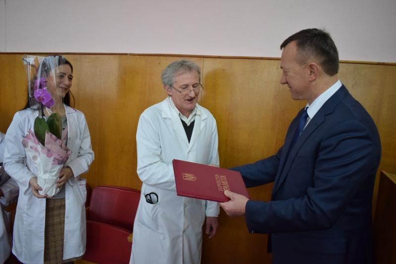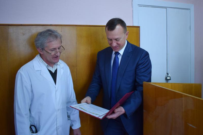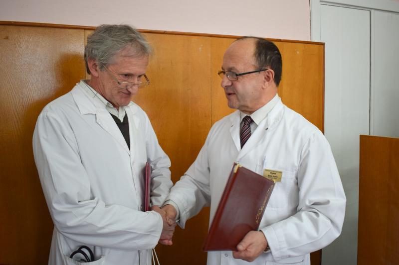 Із нагоди ювілею – 60-річчя – міський голова привітав завідувача анестезіологічного відділення з палатами інтенсивної терапії, заслуженого лікаря України Івана Емериховича Калабігу, який працює у лікарні із 1986 року, а з 1991 року є незмінним керівником відділення, побажав йому міцного здоров’я, добра, успіхів у роботі.