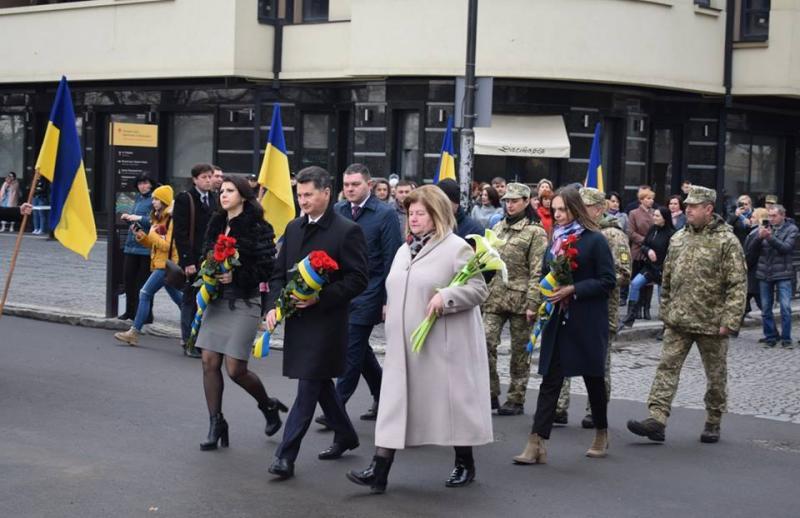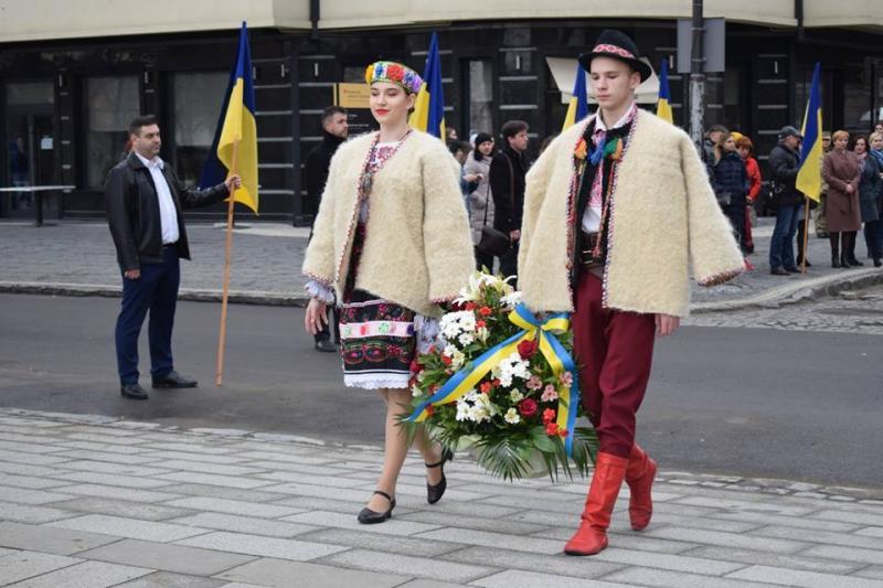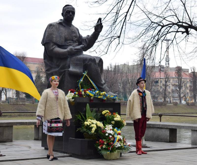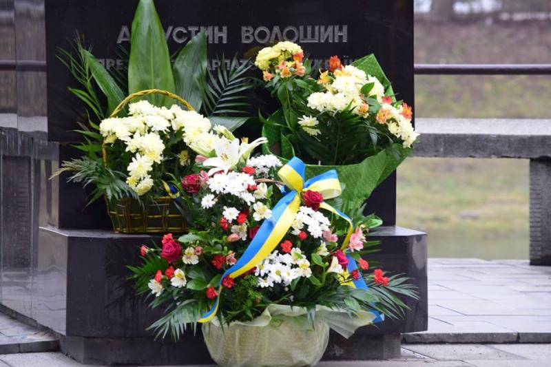 Урочиста церемонія покладання квітів до пам’ятника Президенту Карпатської України, Герою України Августину Волошину з нагоди відзначення 80-ї річниці проголошення Карпатської України відбулася сьогодні в Ужгороді.