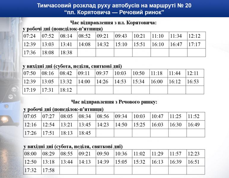 Шановні пасажири! Від сьогодні, 18 березня, змінюється графік руху автобуса №20.