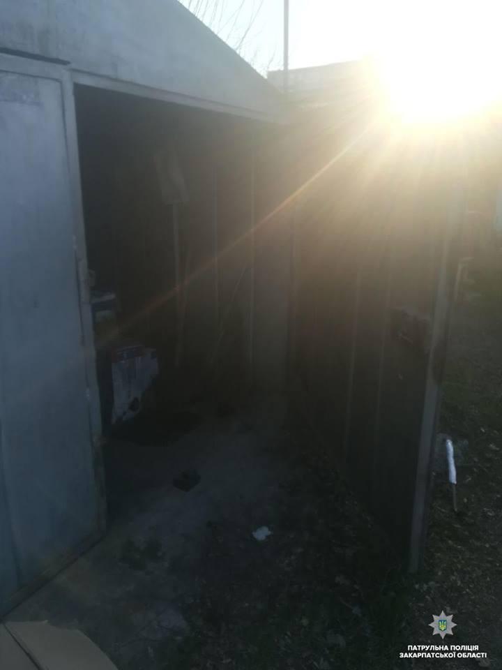Сьогодні, близько 6-ої години ранку, ужгородські патрульні отримали виклик про крадіжку поблизу гаражного кооперативу, на вулиці 8-го березня. Прибувши на місце події, поліцейські помітили відкриті ворота одного з гаражних приміщень, зламаний замок, та приховані неподалік коробки.