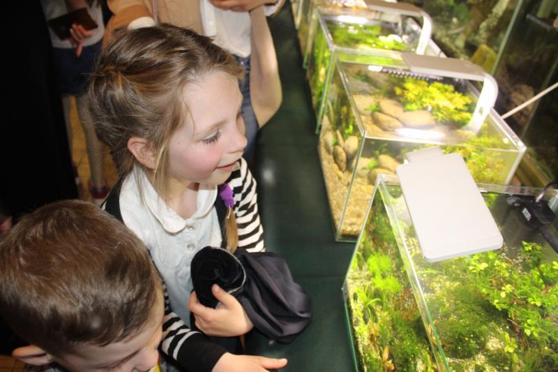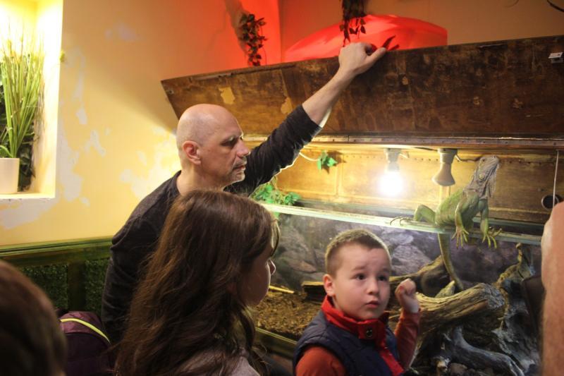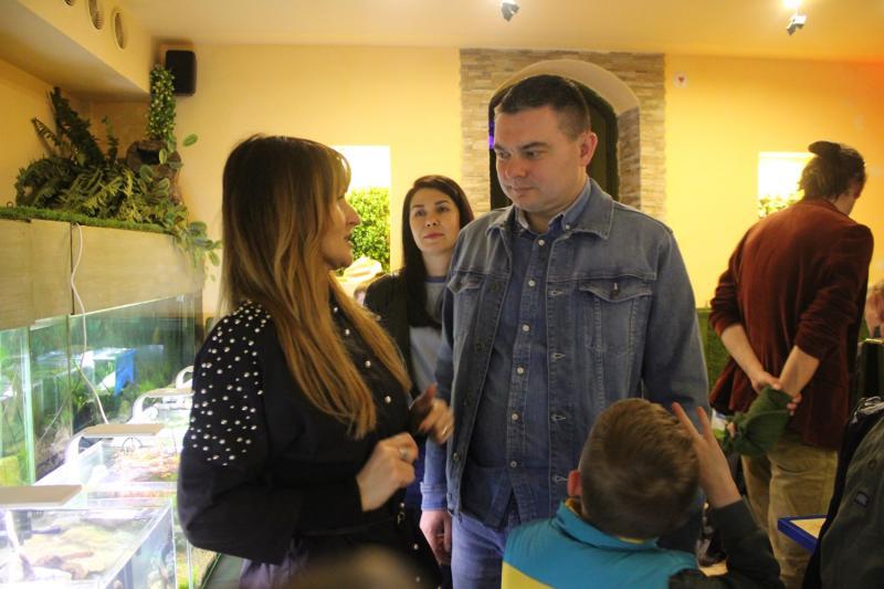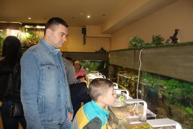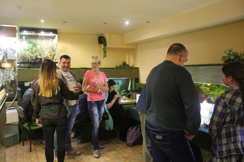 Відвідувачів, особливо юних, окрім нано-акваріумів, цікавили й інші експонати бару-екзотаріума, де проходить виставка. Тут можна побачити бородату агаму, скорпіона імператорського, пітонів тощо.