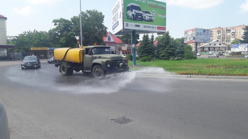 В Ужгороді сьогодні поливають вулиці – поливальні машини проїхали проспектом Свободи, площами Дружби народів, Георгія Кирпи, вулицями Собранецькою, Станційною, Івана Анкудінова та іншими.
