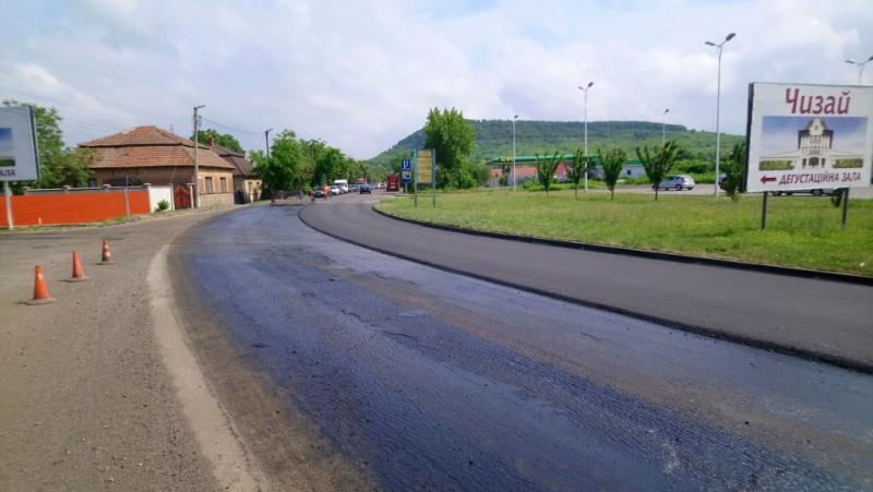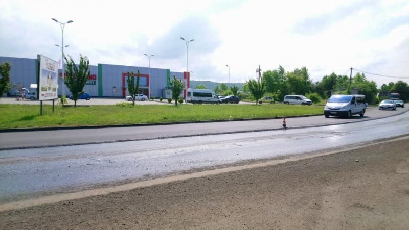 Зараз тривають роботи з укладання вирівнюючого шару по правій стороні дороги на ділянці, що проходить в місті Берегово.
