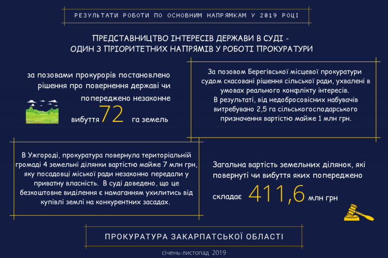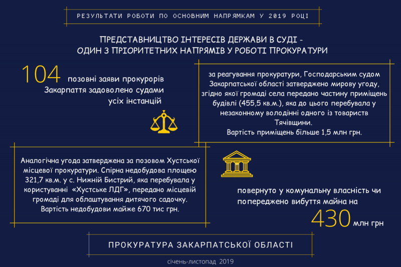 За позовами прокурорів Закарпаття судами задоволені 104 позовні заяви на 430 млн грн (ІНФОГРАФІКА)
