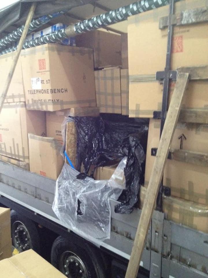 Виявлений не заявлений товар знаходився в середині напівпричепу серед інших коробок з товаром «меблі».