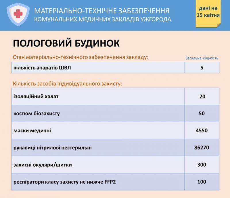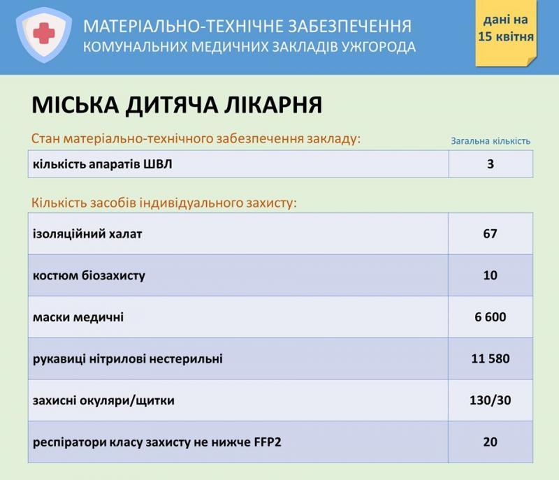 Традиційно актуальну інформацію про матеріально-технічне забезпечення публікує Ужгородська міська рада.