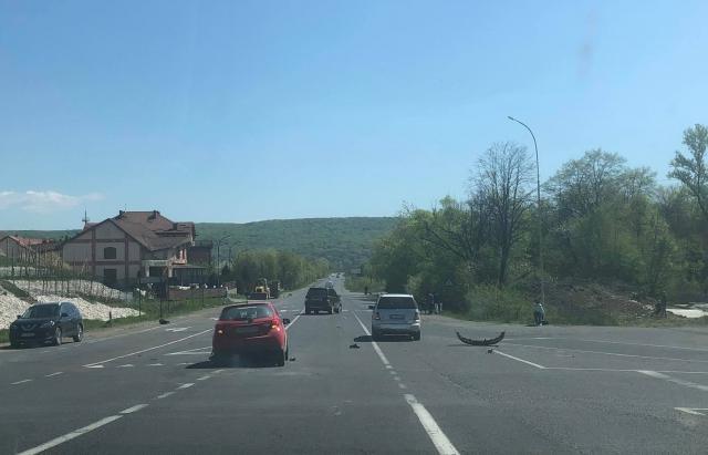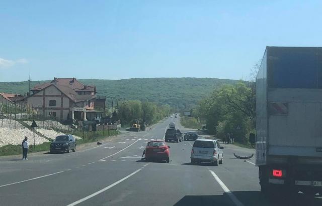 За попередніми даними тут зіткнулось дві автівки: Toyota та Range Rover. У останньої після зіткнення дуже пошкодився перед автомобіля, у Toyota знесло бампер.