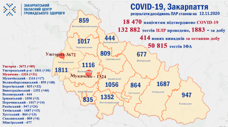 Закарпаття і коронавірус: 414 випадків за добу та 12 пацієнтів померло (ІНФОГРАФІКА)