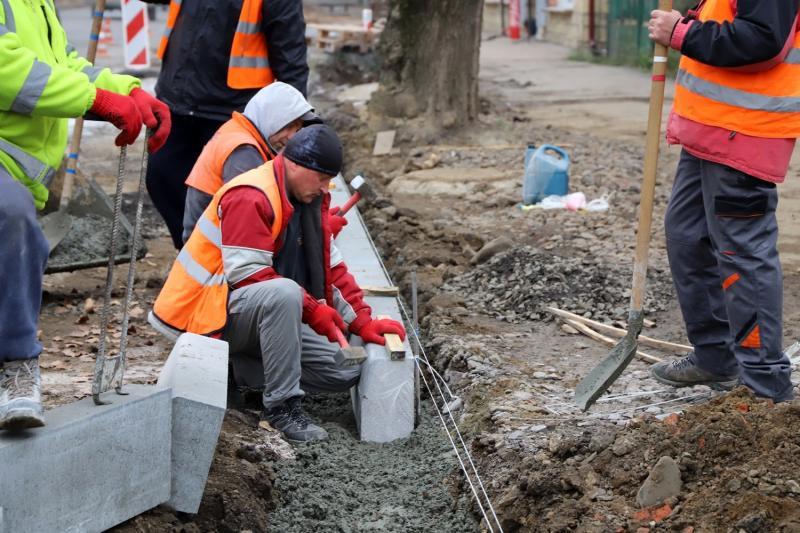Встановлюють бордюри, далі викладатимуть тротуари ФЕМ-плиткою, розширюють паркувальні місця. Перед цим тут замінили стару водопровідну мережу.