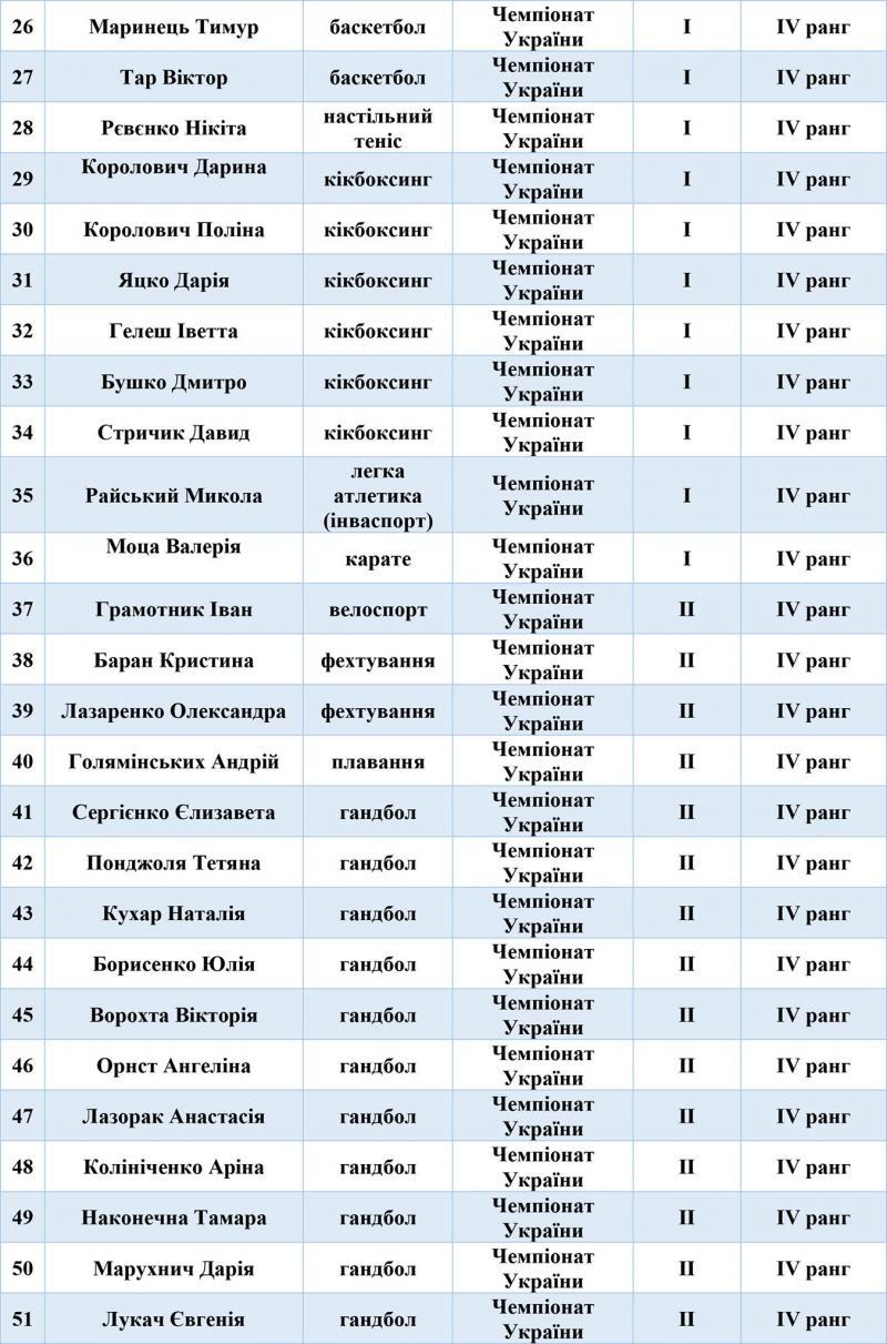 Загалом на отримання грошової винагороди за підсумками 2020 року подали 104 кандидатури – 84 спортсменів та 20 тренерів від 16 спортивних організацій, інформує управління у справах культури, молоді та спорту. Це – СК «НА СТАРТ, Закарпатський обласний осередок «Всеукраїнський союз таеквон-до», Закарпатська федерація фехтування, ГО «Федерація хортингу в м.Ужгород», Федерація дзюдо Закарпатської області, Обласна дитячо-юнацька спортивна школа осіб з інвалідністю, Закарпатська обласна спортивна організація фізкультурно-спортивного товариства «Спартак», Ужгородська міська федерація пауерліфтингу, Відокремлений підрозділ громадської організації «Національного Олімпійського комітету України», Школа вищої спортивної майстерності Закарпатської ОДА, Закарпатський регіональний центр з фізичної культури і спорту осіб з інвалідністю «Інваспорт».