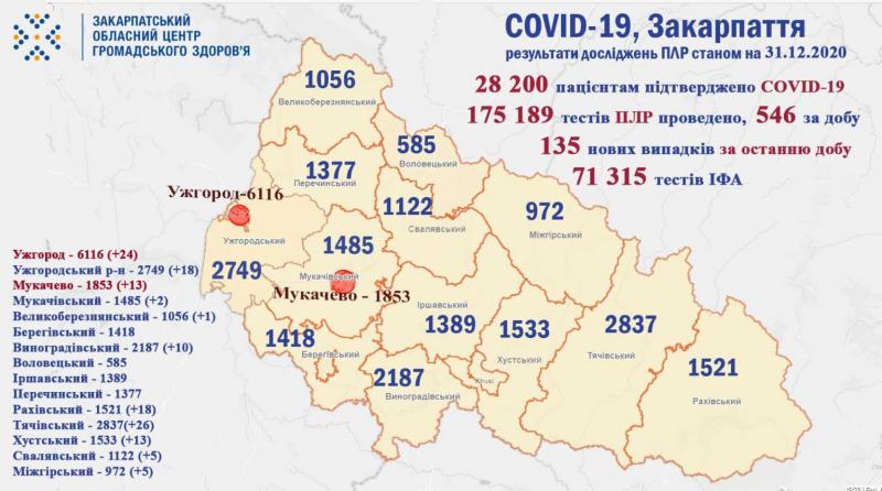 загалом, 28 200 закарпатцям встановлено діагноз COVID-19, із яких 2188 медики та 1473 - діти;