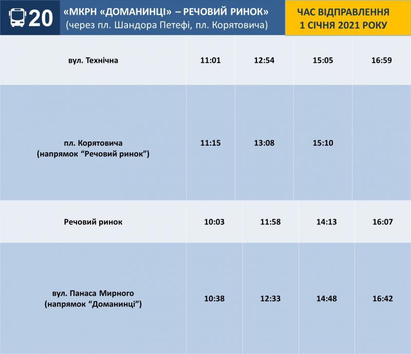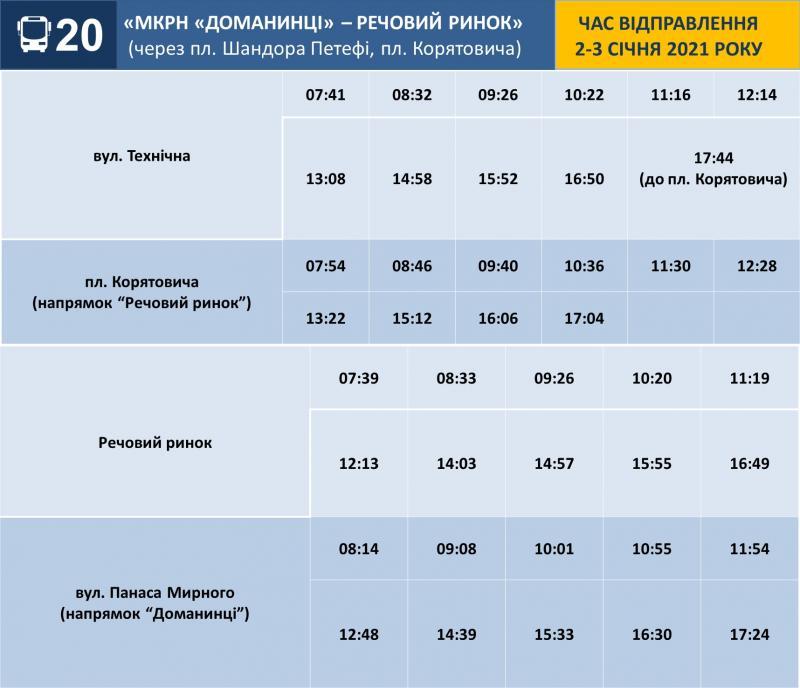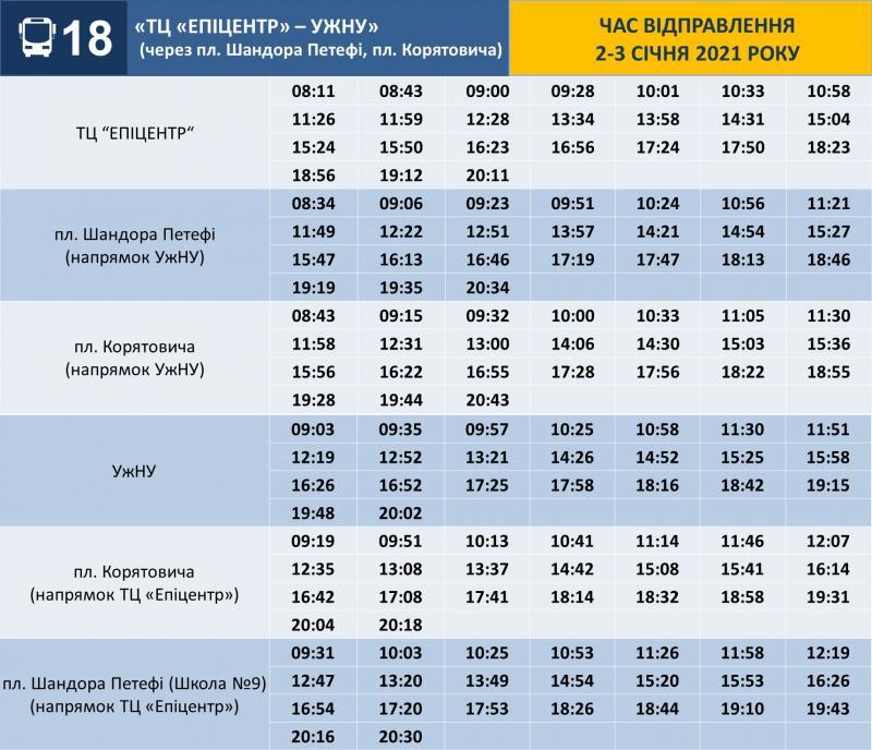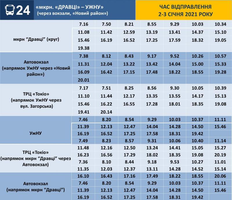 Розклад руху міських автобусних маршрутів в Ужгороді на новорічні свята