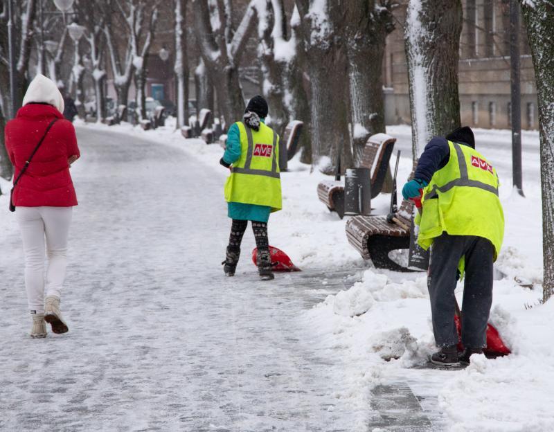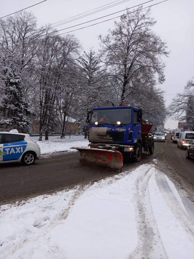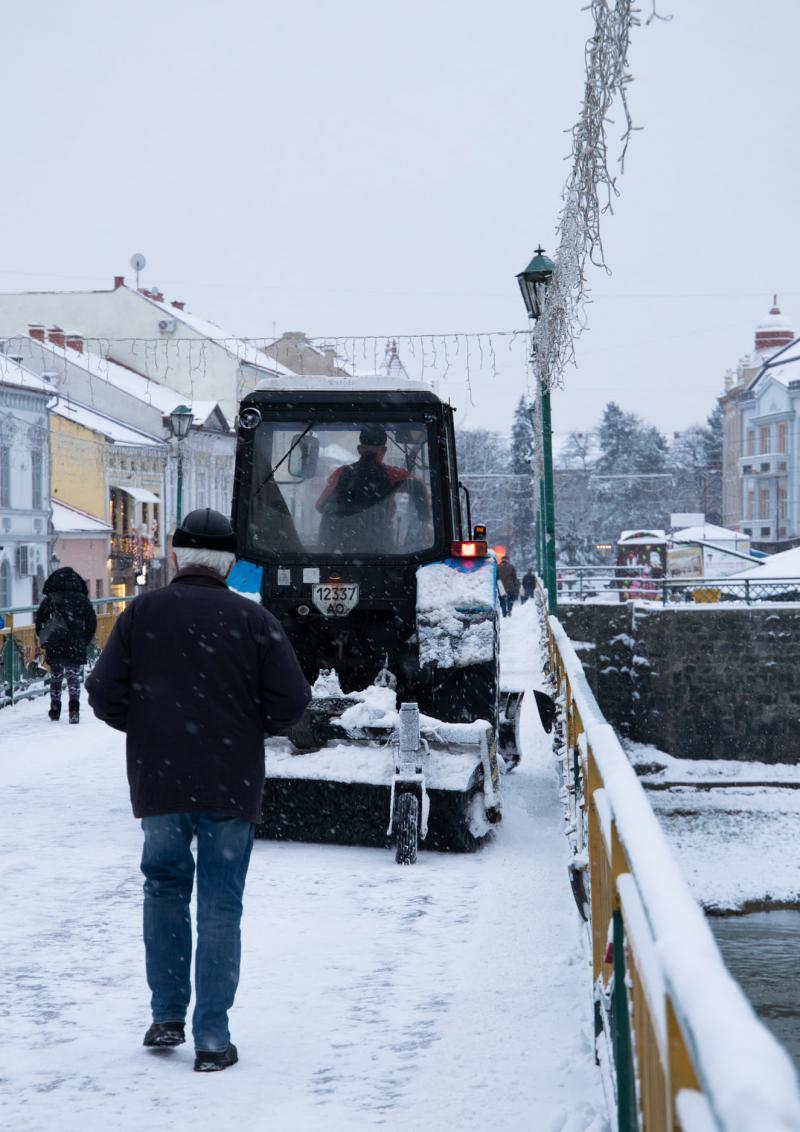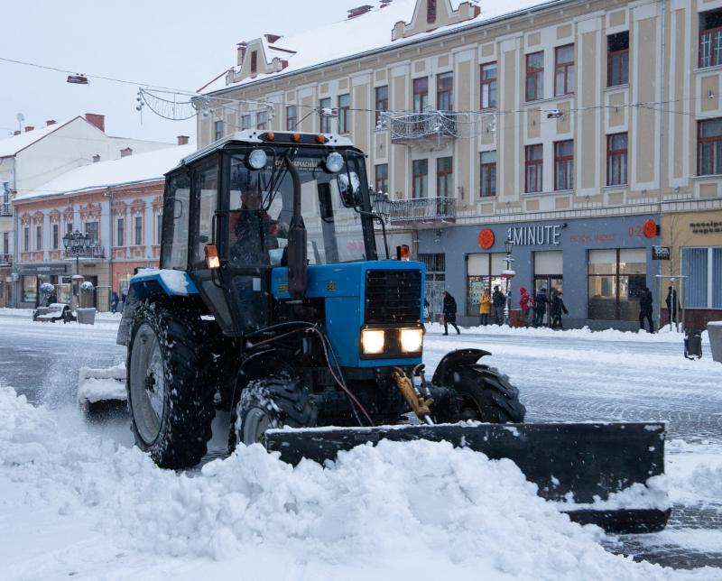 5 тракторів комунального підприємства КШЕП, 7 спеціальних комбінованих дорожніх машин та працівники облслуговувальних підприємств працюють на прибиранні, розчищенні снігу в Ужгороді.