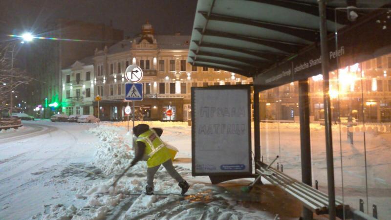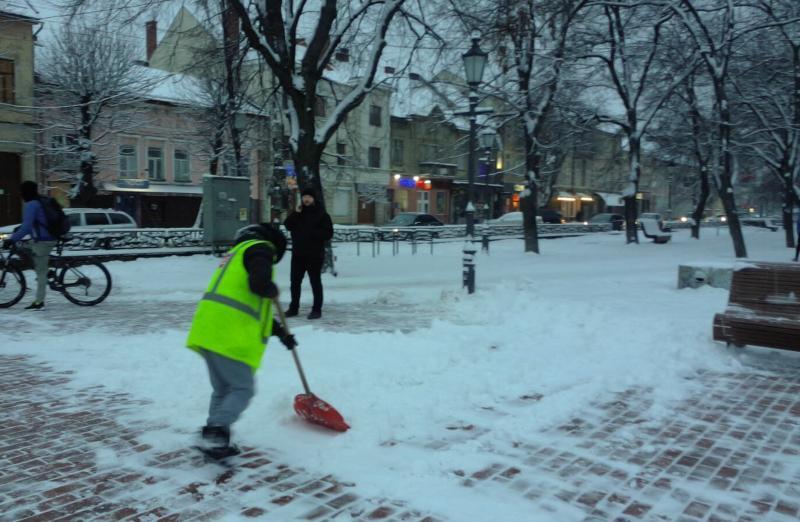 Розпочали учора ввечері, з 21.00, із ґрунтування доріг, а з 2 години ночі - прибирання снігу. Насамперед розчищали вулиці з підйомами, мости, автобусні зупинки.