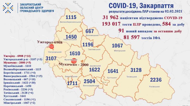 Закарпаття і COVID-19: 91 випадок за добу, померли двоє пацієнтів