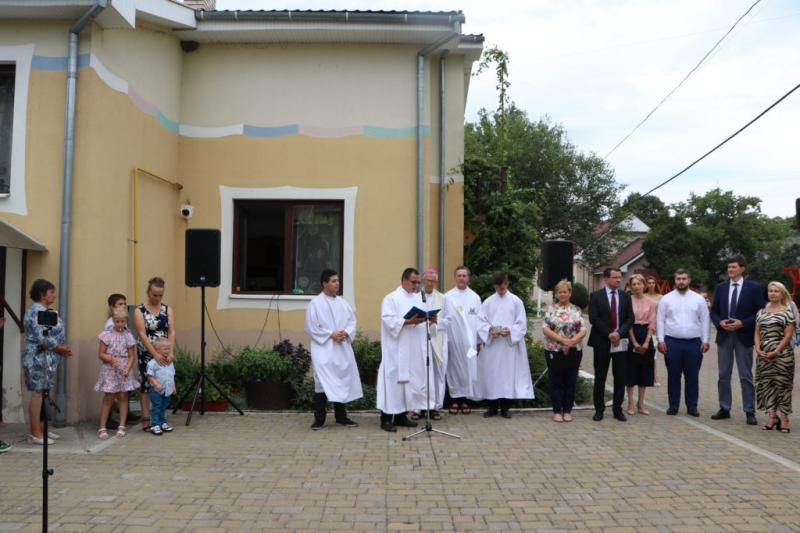 Потім захід продовжився у дворі перед будинком, де присутніх привітала директор Дитячого будинку Марія Біро. Вона наголосила, що Дитячий будинок досяг чергової віхи, розпочинається спільне життя п’ятої родини.