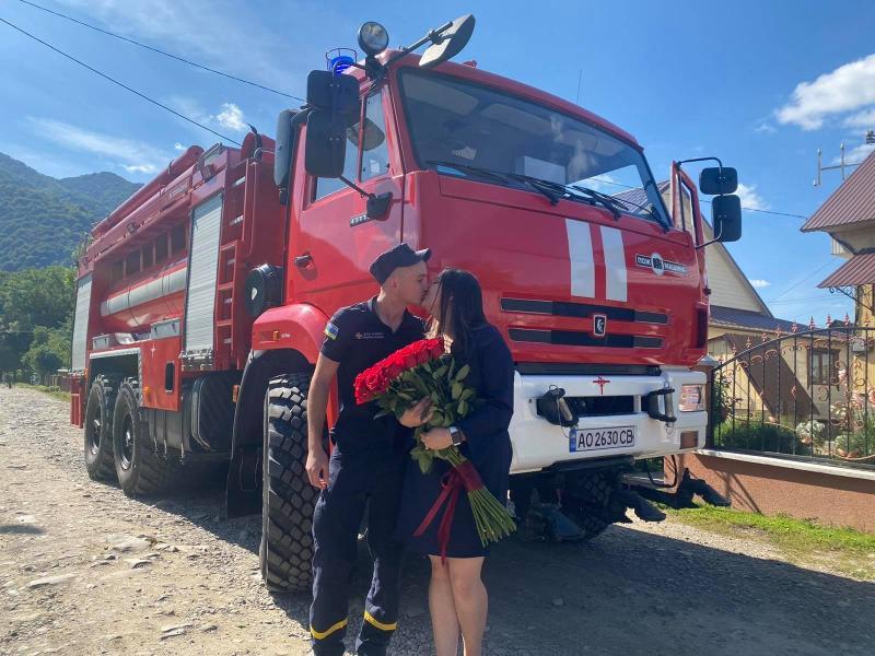 Саме таку пропозицію руки та серця влаштував для своєї коханої, вчительки інформатики Синевирської школи Антоніни Матійчин командир відділення державного пожежно-рятувального поста с. Колочава Іван Іваниш.
