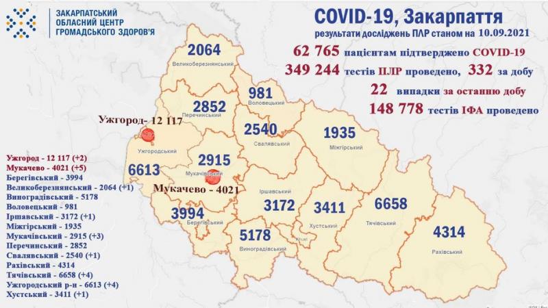 За минулу добу, 9 вересня, на Закарпатті коронавірус підтверджено у 22 людей. Інформація про це з’явилась на сторінці Закарпатського обласного центру здоров’я в мережі Facewbook.