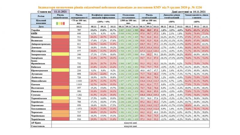 На сайті МОЗ вказано: в нашій області за 10 листопада показник госпіталізацій складає 59, 1, завантаженість ліжок із киснем — 60,4%.