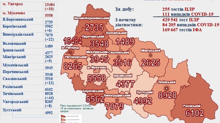 На Закарпатті за добу виявили 111 випадків COVID-19