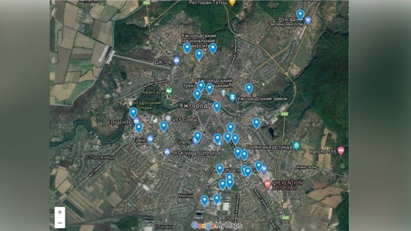 "Завдяки мобільному додатку Google Maps та зусиллям фахівців з "Асоціації пожежників-добровольців" і "Громадського Штабу оборони Закарпаття" можна побачити 31 подібний об’єкт, який знаходиться в межах обласного центру", — йдеться в повідомленні.
