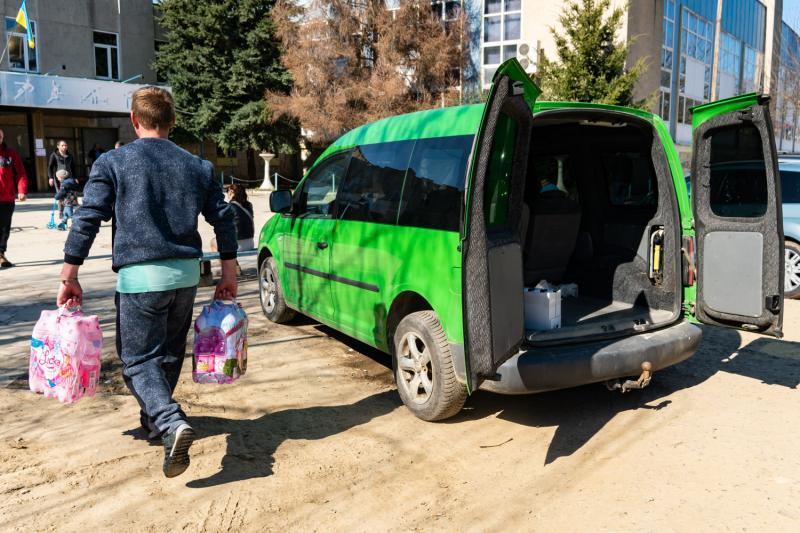 Централізовано передається гуманітарна допомога понад 30 закладам на території міста, де тимчасово дали прихисток переселенцям. Працівники міської ради, цілодобово присутні у кожному з закладів тимчасового розміщення, двічі на день формують замовлення та надсилають їх у «Совине гніздо». Волонтери у координації з працівниками міської ради збирають те, що із замовленого є в наявності – засоби гігієни, продукти, питну воду – і доставляють безпосередньо до централізованих місць розселення. У місцях, де є і кухні, скажімо, в школах, гуртожитках, продукти передають для спільного приготування.