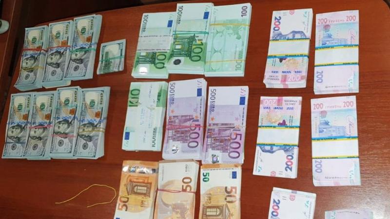 "Під час здійснення огляду особистих речей батька і сина виявлено грошові кошти та цінності. Зокрема: 92 400 гривень, 96 900 євро, 71 200 доларів США та 3 золоті злитки загальною вагою 300 грамів (вартістю 438 тис. грн)".