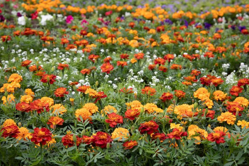 На площі Народній в одній клумбі сформували вишиванку із агератума, жовтих чорнобривців, вербени синьої, колеуса зеленого, алісума білого, бегоній – червоної та білої, а в іншій – Прапор України, який квітне агератумом, тагетесом жовтим, лобелією синьою, колеусом зеленим, аліусом білим, герберою, бегонією червоною, сульфінією, вербеною.