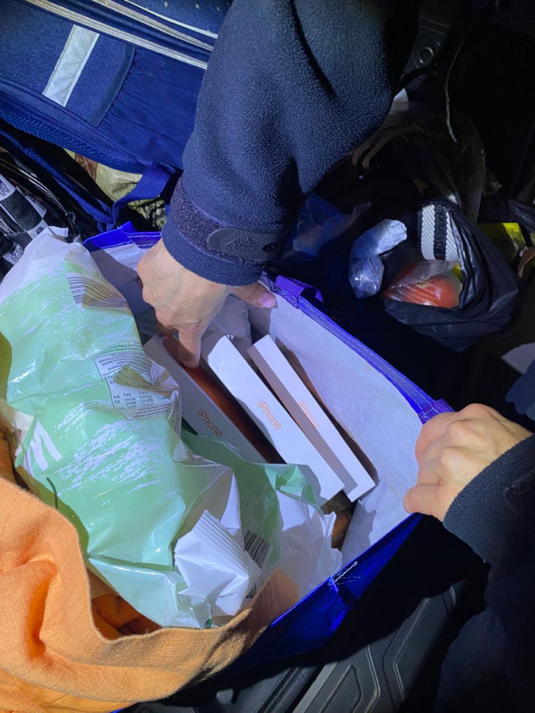 Втім, у ході перевірки транспортного засобу митники виявили серед особистих речей 9 новеньких мобільних телефонів Aple iPhome 17 Pro різних моделей.