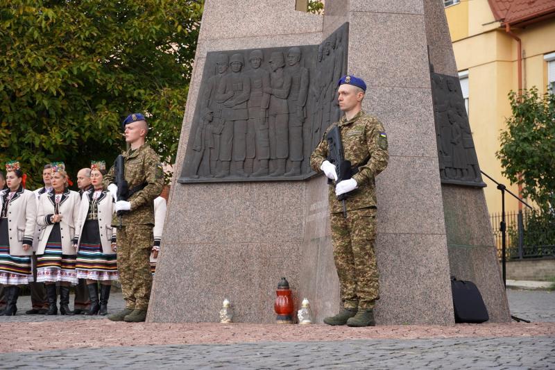 Сьогодні на Пагорбі Слави в Ужгороді керівництво області та міста разом із військовими й ветеранами, представниками правоохоронних і дипломатичних структур, духовенством та родинами загиблих поклали квіти до могил і підніжжя Меморіалу полеглим Героям України.