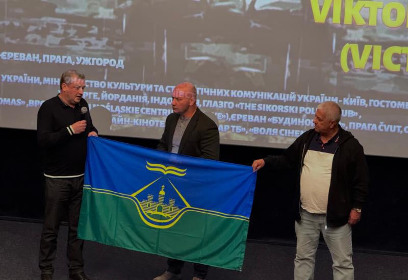 Також, взнак подяки за гостинність міста, до слова запросили виконуючого обов’язки міського голови Вадима Борця. Від імені громади Ужгорода він прийняв подарунок — прапор міста Гостомель, який подарували на добру згадку та вияв вдячності.