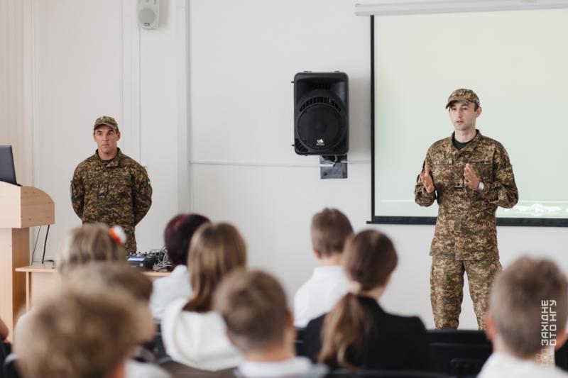 У ліцеї імені Августина Волошина з учнями спілкувались на тему патріотизму. Гвардійці розповіли про службу в Національній гвардії України, продемонстрували сучасні дрони і навіть дали можливість школярам спробувати польоти на симуляторі.